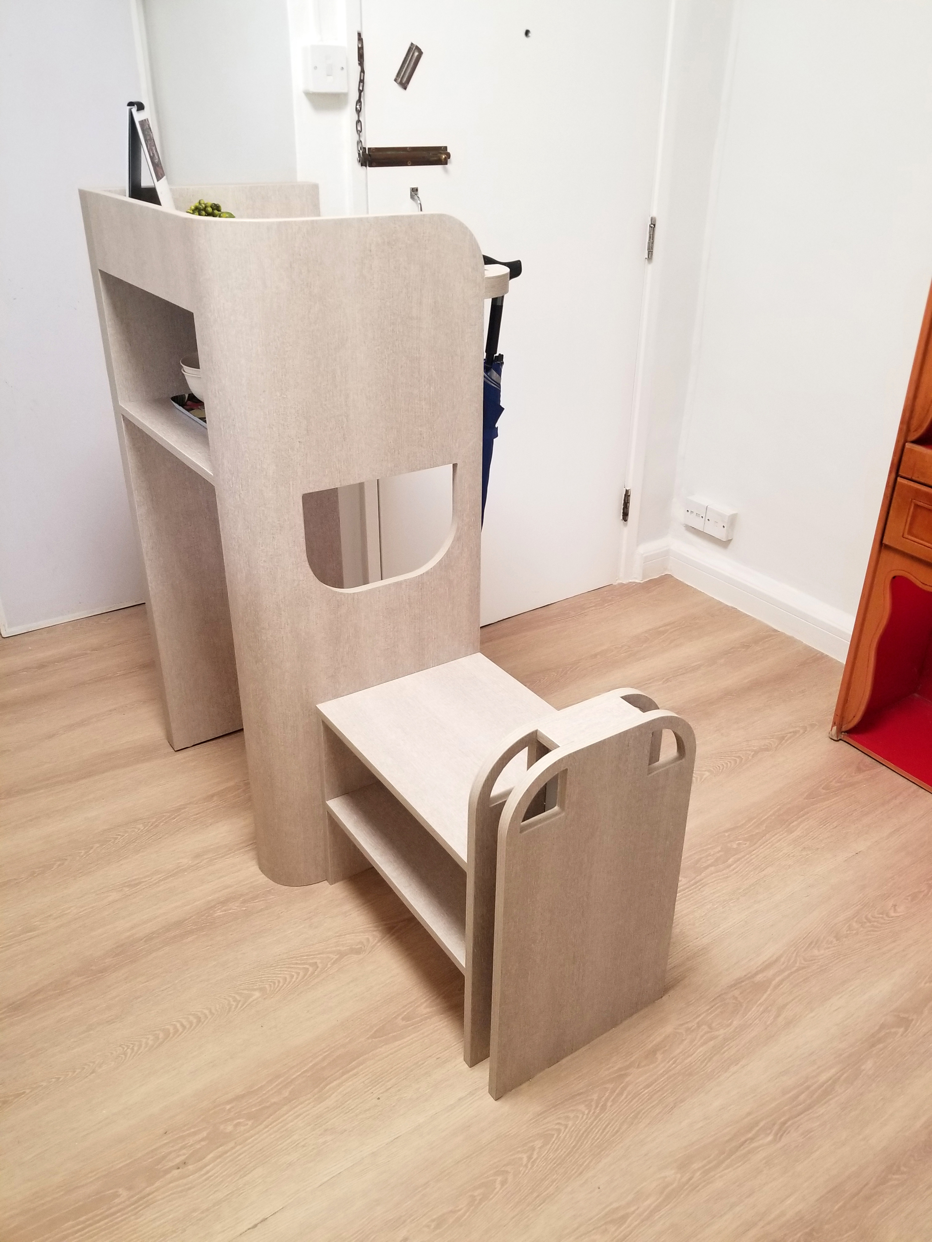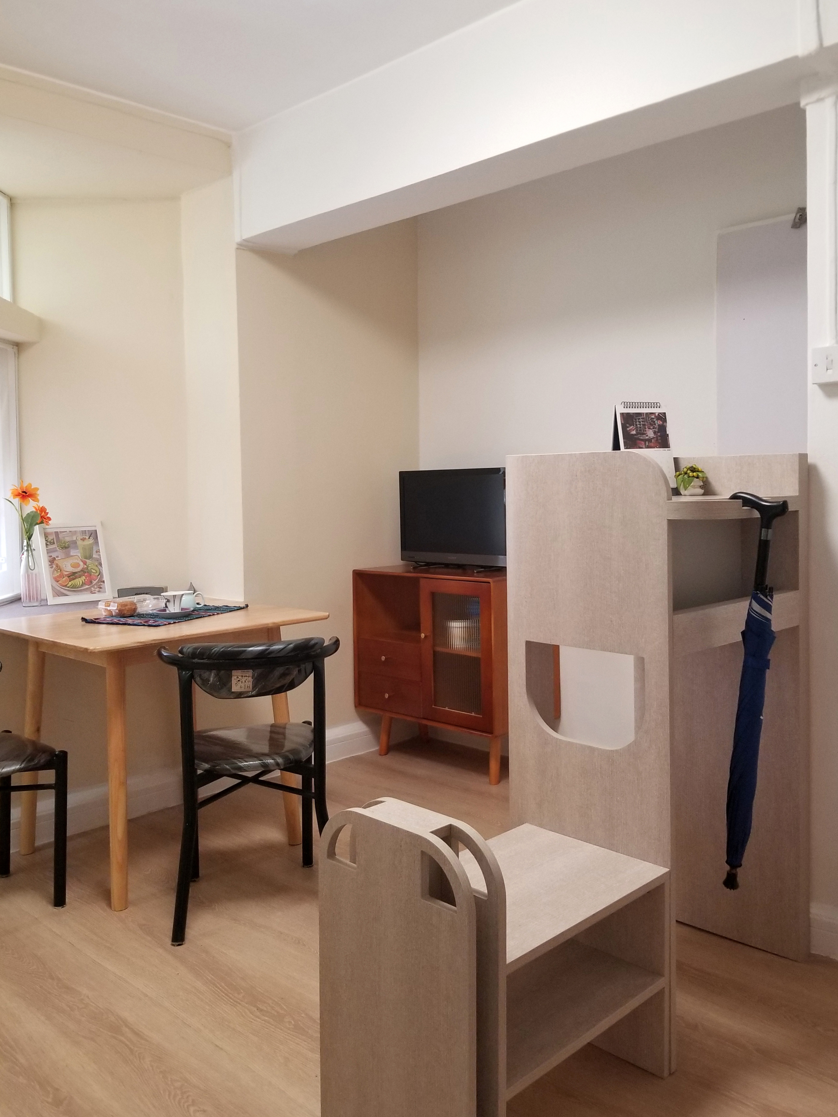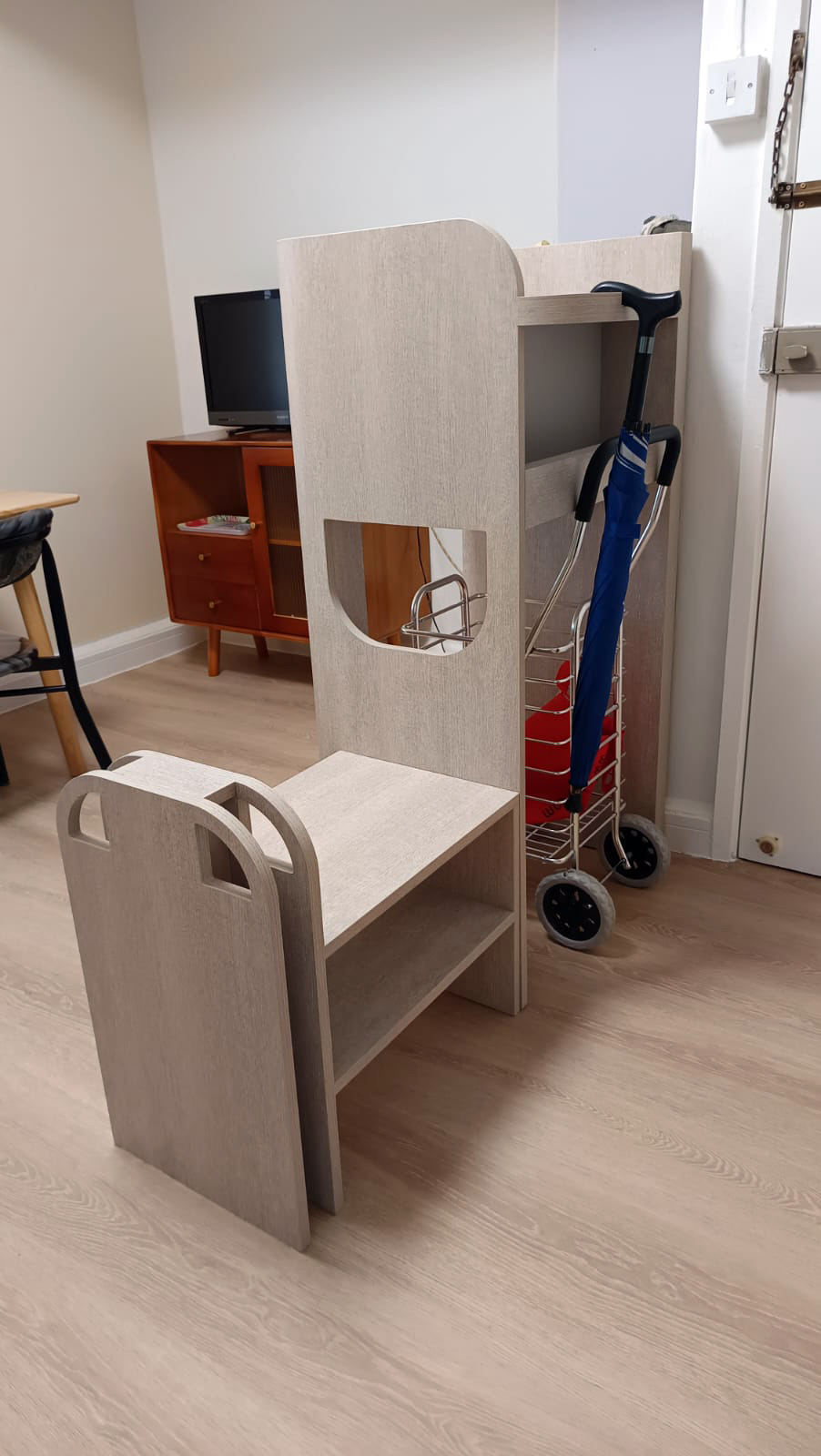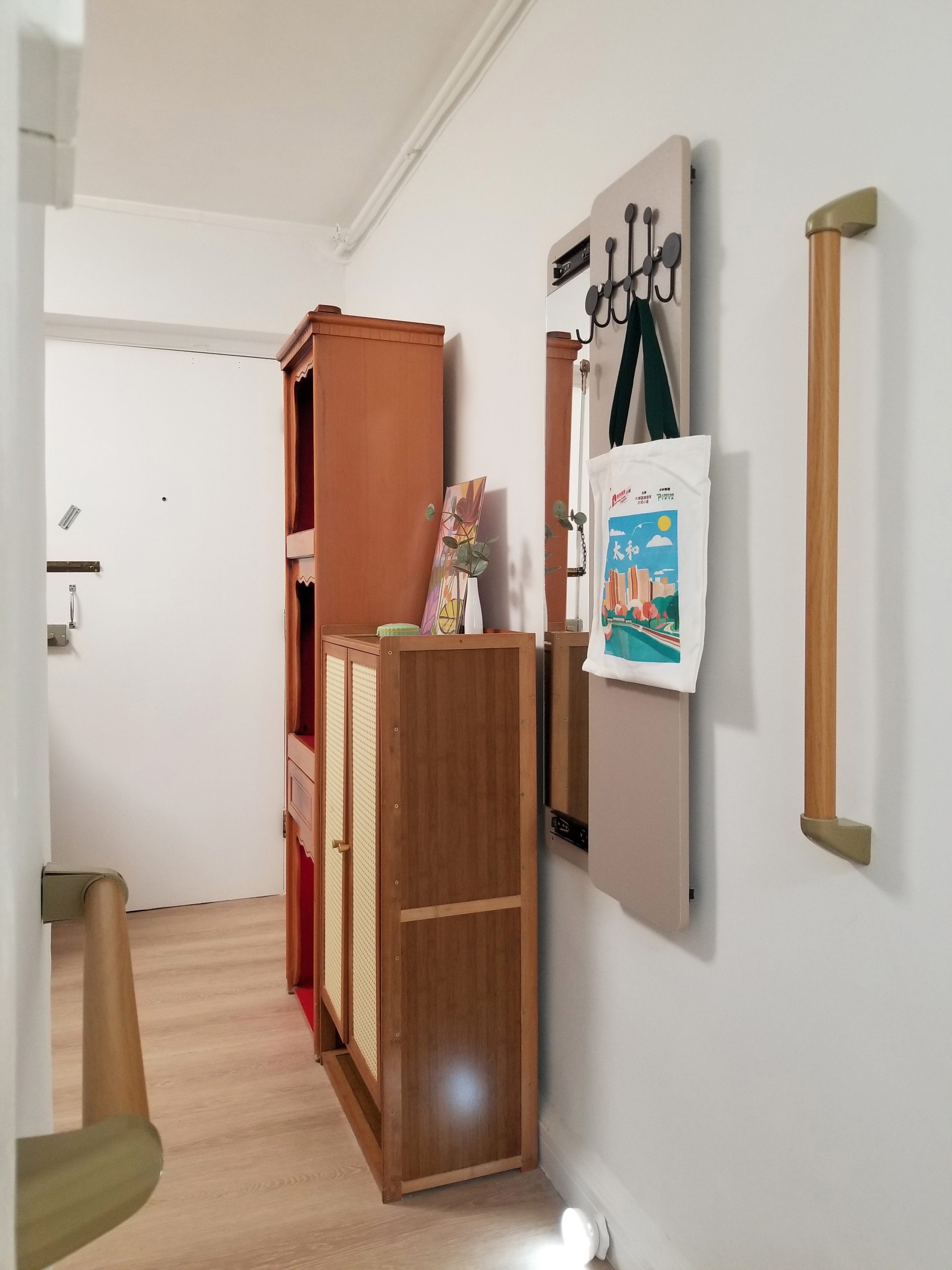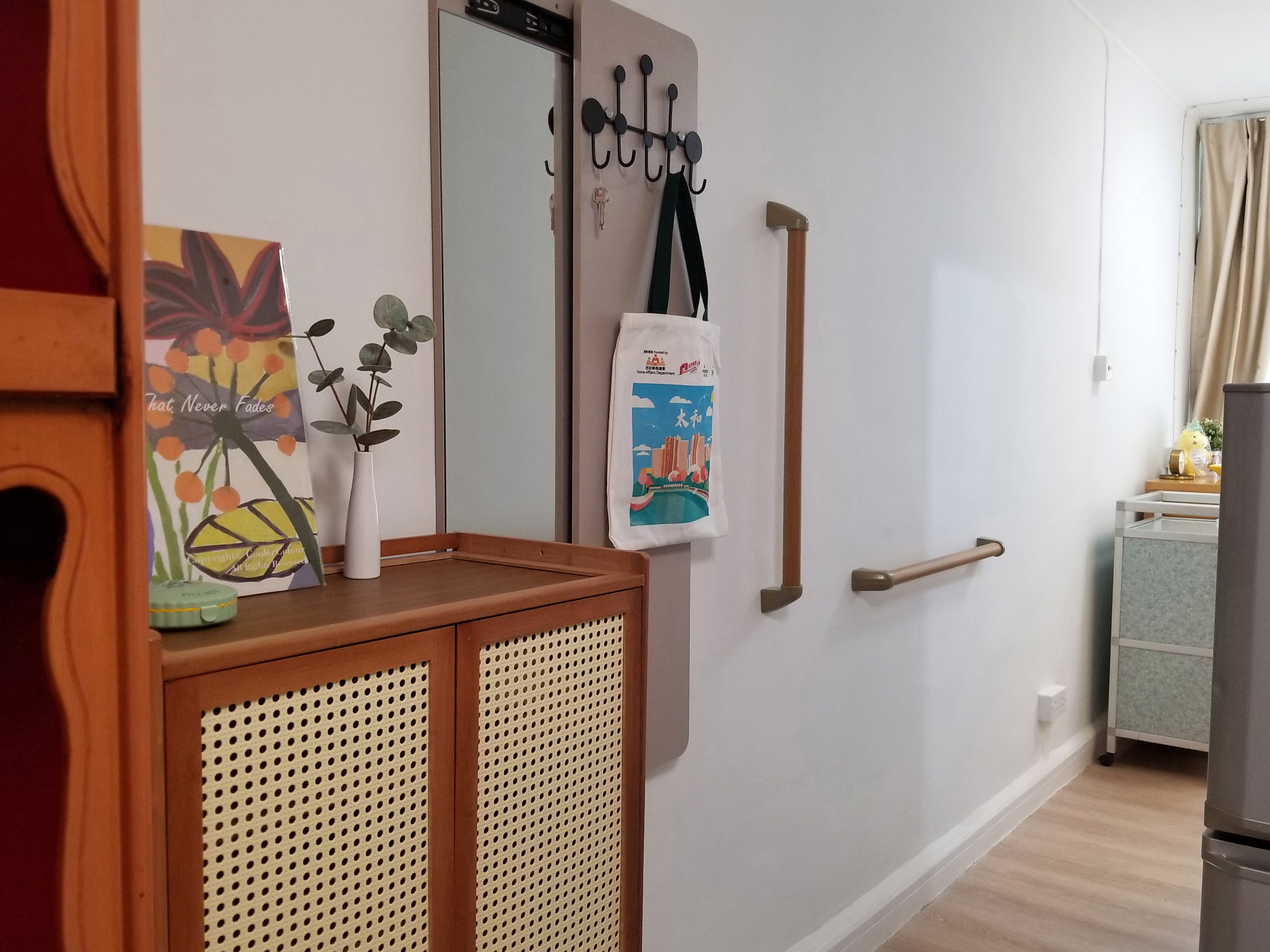 In addition, the team thoughtfully custom-built a multifunctional cabinet near the entrance, designed to store her walking cane and shopping trolley, while also serving as a bench for changing shoes. New lighting fixtures were installed, casting a soft glow on Ms. Lee's favourite beige-colored walls, creating a warm and cozy atmosphere. With these thoughtful modifications, Ms. Lee can now enjoy a safer and more comfortable aging-in-place experience.