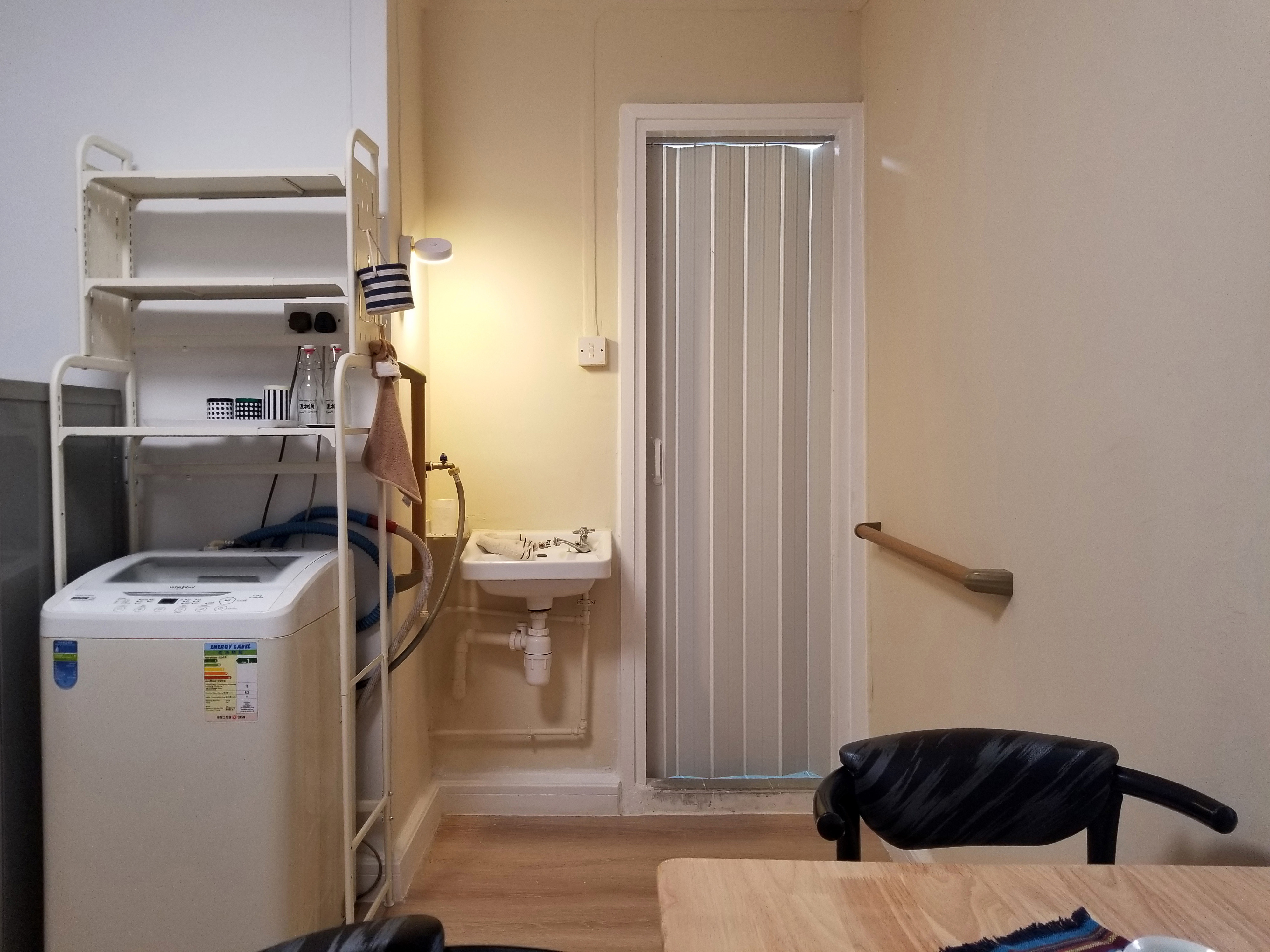 As Ms. Lee grows older and her mobility declines, the lack of proper flooring increases the risk of falls and injuries. The rough, unprotected concrete floor poses a serious safety hazard for her.
